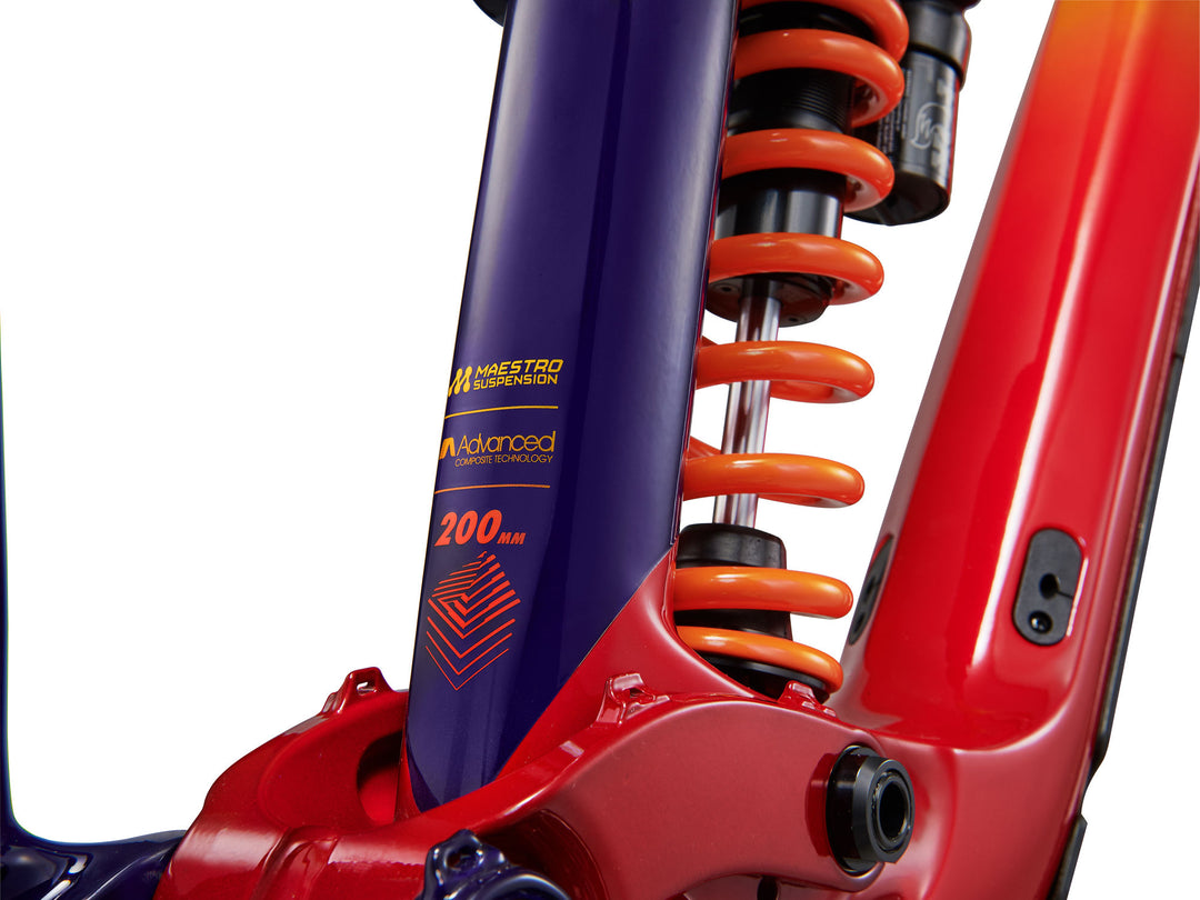 FrameAdvanced-grade composite front and rear triangles, 200mm Maestro suspension, flip chip - headset, flip chip - dropout DH, flip chip - Maestro 3, 12x157mm thru-axle, 27.5 or 29-inch rear wheel compatible