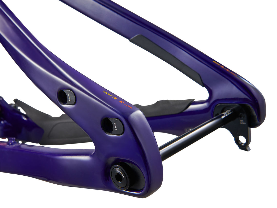 Three flip chips provide unprecedented adjustability. First, a three-position Maestro flip chip lets you dial in frame geometry for your riding style and terrain. Next, a new headset flip chip adjusts reach so you can easily achieve perfect positioning. And finally, a rear dropout flip chip lets you adjust the overall wheelbase and handling characteristics.
