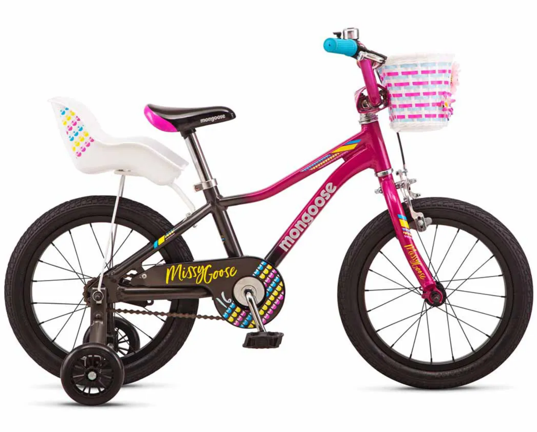 Introducing the perfect first pedal bike for your little one! Our bike is specifically designed with young riders in mind. The small lightweight frame allows them to easily stand over it and touch the ground, boosting their confidence. We understand that being a kid means having fun and being carefree, so we've made sure our bike is durable with scratch-resistant decals that can handle rough playtime. And for added safety, we've included a chainguard to keep little fingers and clothing out of harm's way. Learning to ride has never been easier with the Skid 16!