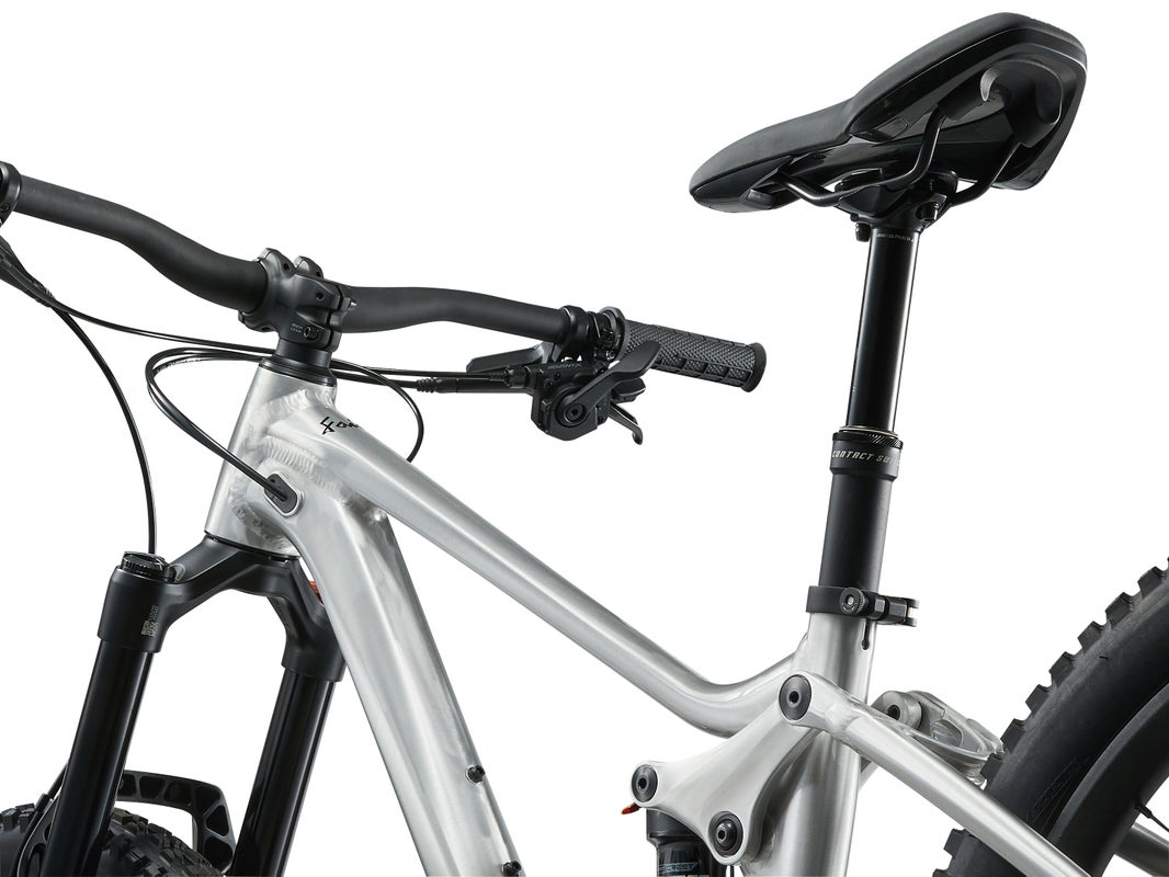 This all-new trail bike features a lightweight ALUXX SL aluminium frame with FlexPoint rear suspension and a Giant Crest FloTrac Lite shock that delivers 130mm of fully active travel to help kids advance their trail-riding capabilities. Up front, the new Giant Crest TR Elite Lite fork handles rocks, roots and ruts with smooth efficiency. A youth-specific, 24-inch Giant TRA WheelSystem combines lightweight performance with robust rim strength, helping kids make the leap from neighborhood rides and pump tracks to more challenging singletrack terrain. A dropper seatpost, shorter cranks and cockpit controls designed for small hands all add up to greater control and confidence.