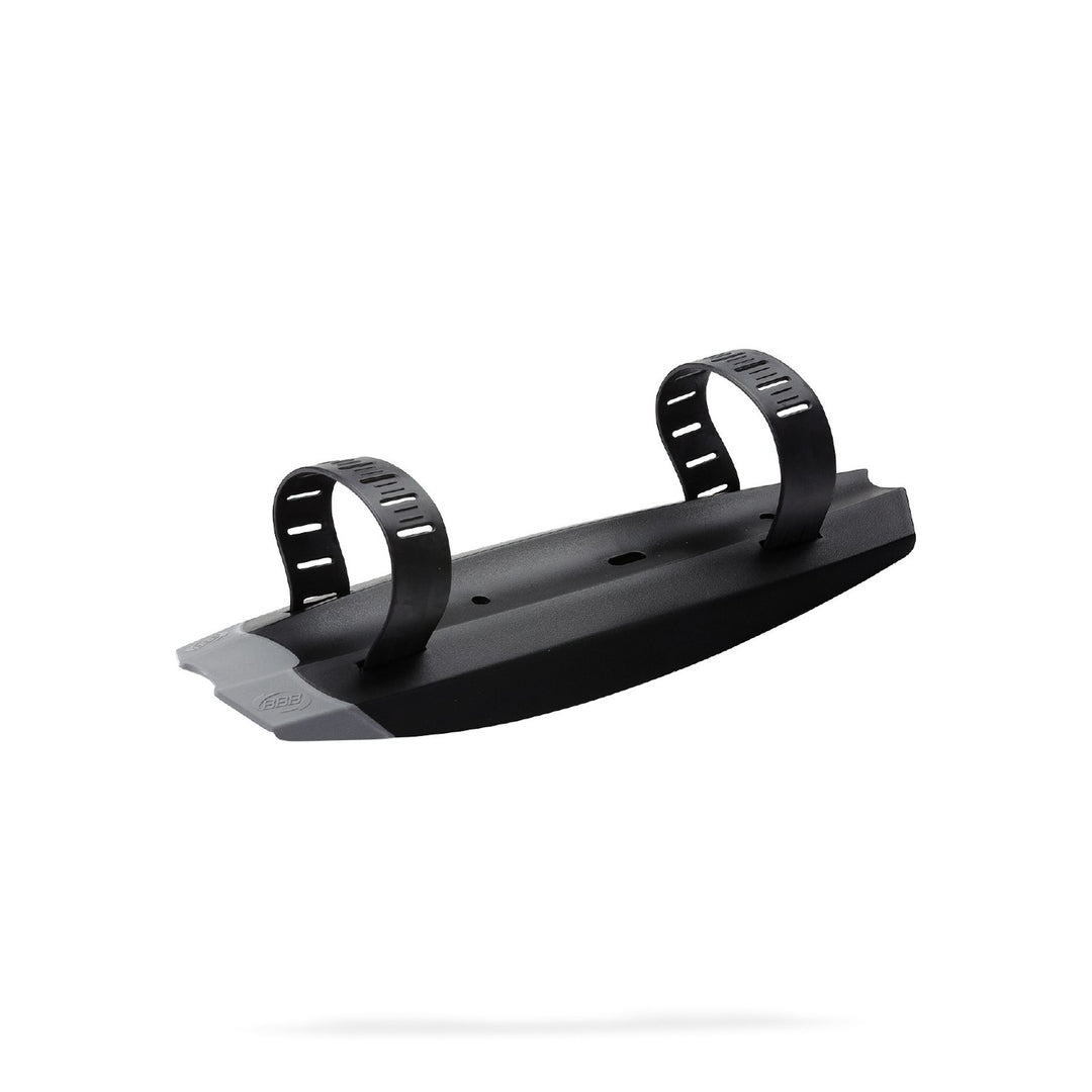 Easy to install downtube mounted fender due to two elastomer straps