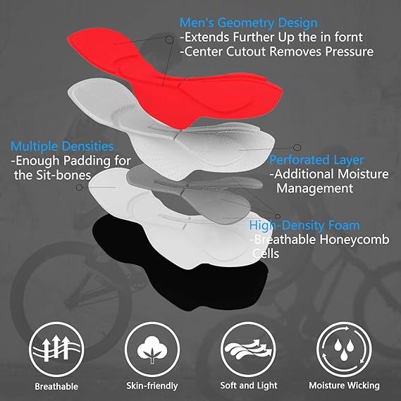- 【4D Protection Pad】 Pad is laminated with 6-layer high impact foam offer comfort and high protection from injuries during long-distance cycling. The surface of the pad has ventilation holes, making it lightweight, breathable, and help to prevent saddle sores.