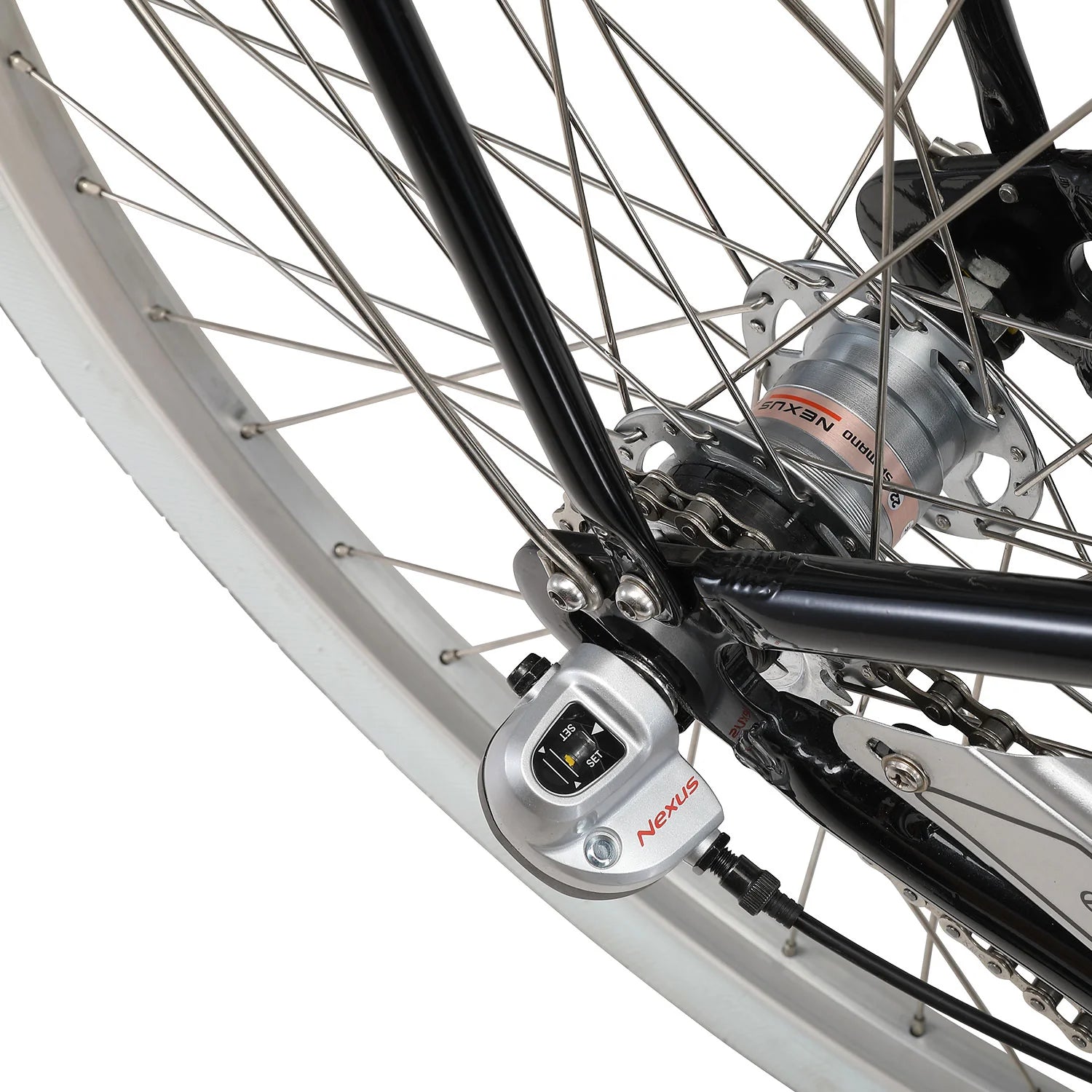 Reduce the need for maintenance with the Shimano Nexus hub gear. Gears are kept safely inside the outer shell that protects them from the elements and keeps them clean.