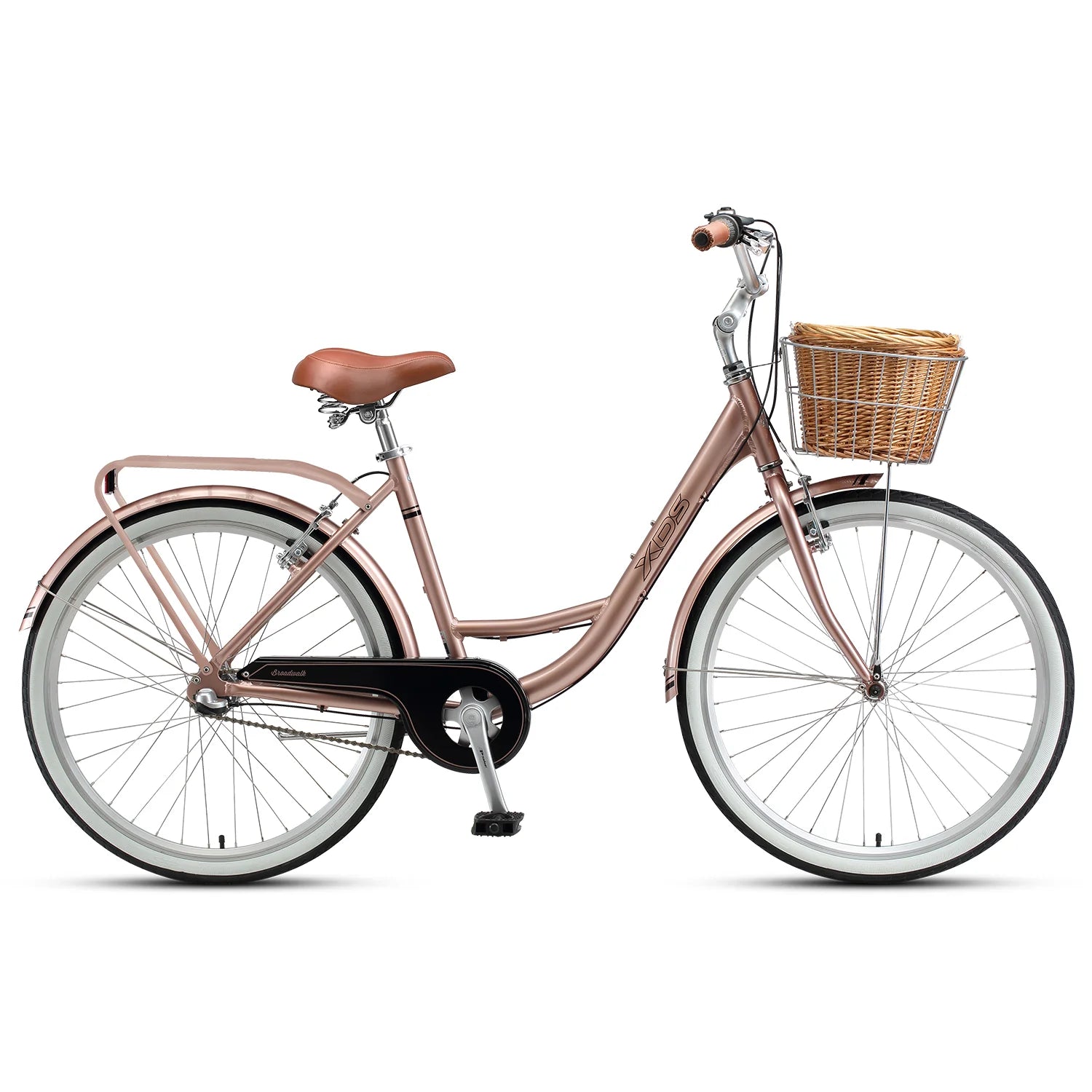 Ride the XDS Broadwalk along sandy roads, confident that your Shimano Nexus drivetrain will keep maintenance minimal. Low step through alloy frame and chainguard let you ride in whatever makes you feel comfortable. Take the Broadwalk to the store, with the front basket and rear rack for easy storage.